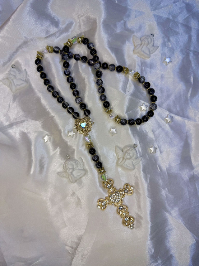 Au centre, le connecteur en forme de cœur rappelle l’amour fidèle de Dieu qui ne rejette pas ceux qui se confient en Lui, même quand les hommes ferment la porte. La grande croix dorée, portant un cœur serti de strass, proclame que la lumière jaillit des ténèbres et que la foi persévérante est toujours récompensée.