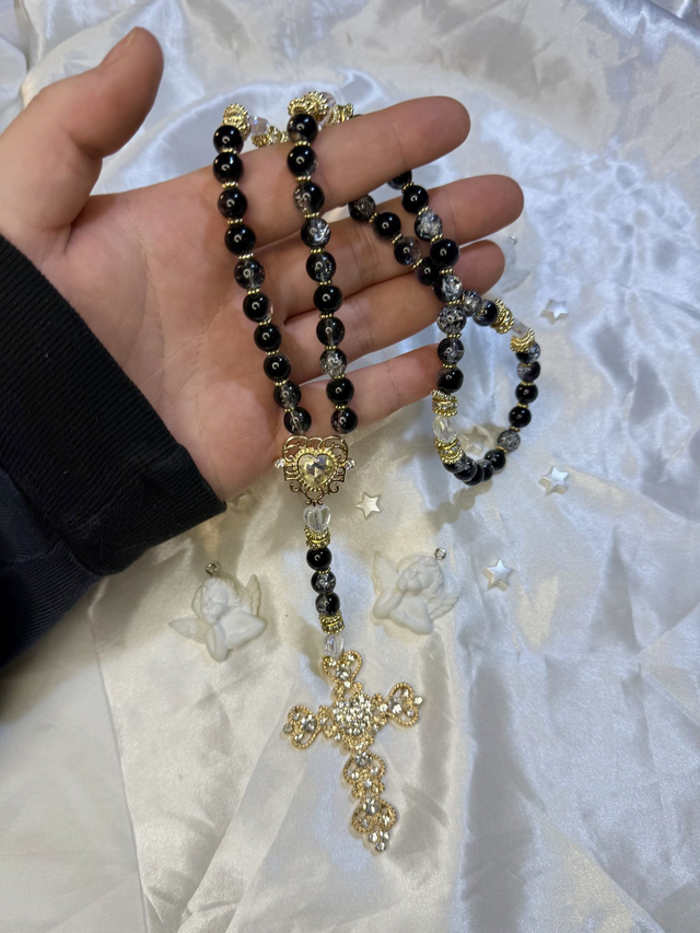 Tamar, femme de foi et de courage, traversa l’ombre de l’injustice et de l’attente. Les perles noires de ce chapelet rappellent la nuit de silence et de douleur qu’elle a connue, quand tout semblait perdu. Mais de cette obscurité jaillit l’or de la promesse divine : les reflets dorés évoquent la bénédiction qui éclata dans sa descendance, puisque de son lignage naquit la lignée de David et, en son temps, le Christ lui-même (Matthieu 1:3).