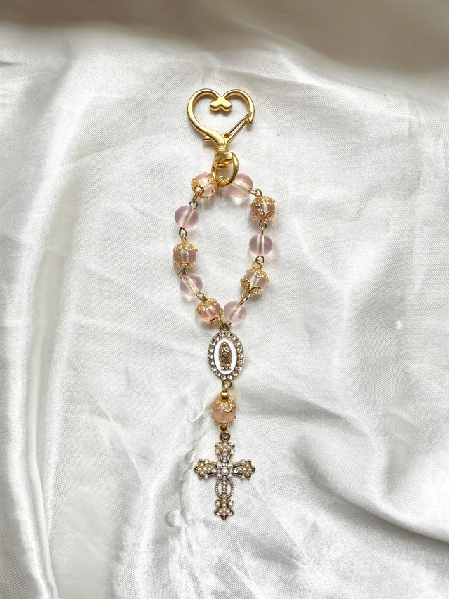Le rose doux de ce dizainier évoque la tendresse protectrice de Miryam envers son frère et son peuple. Les détails dorés représentent la gloire divine qui l’a accompagnée tout au long de sa vie.