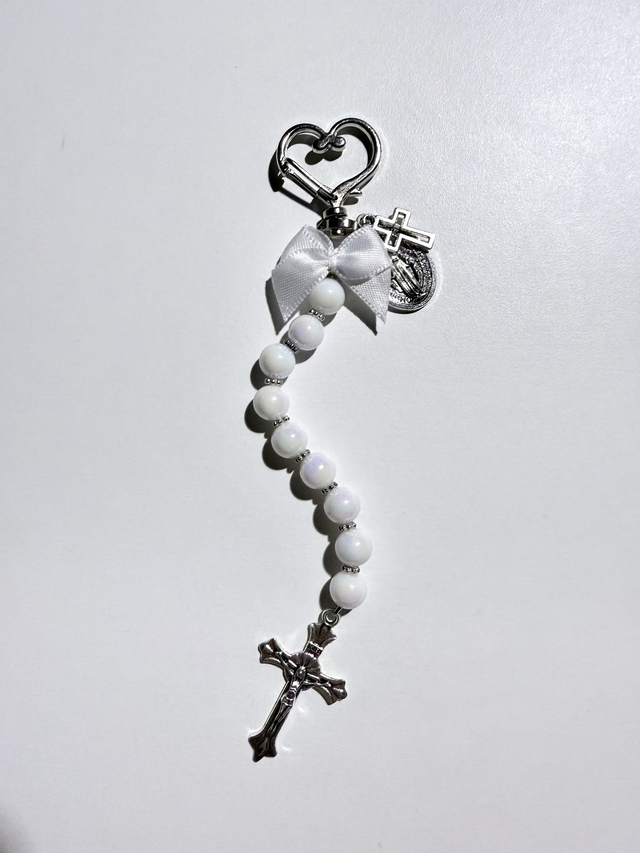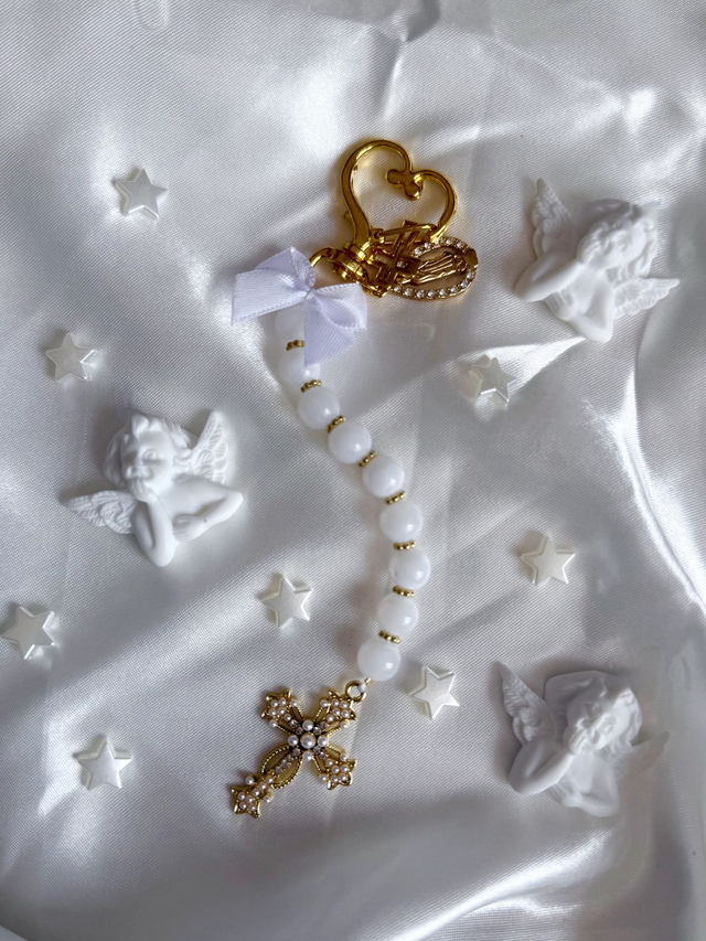 Le blanc symbolise la force, la protection et le mystère divin et le doré évoque la gloire céleste, la royauté et la lumière divine. Les perles en rose blanches ajoutent une touche de pureté, de clarté et d’espérance spirituelle. Ces couleurs élégantes et profondes rendent hommage à Abraham, un chapelet inspiré par la figure biblique d’Abraham, symbole de foi, d’alliance et de promesse divine.