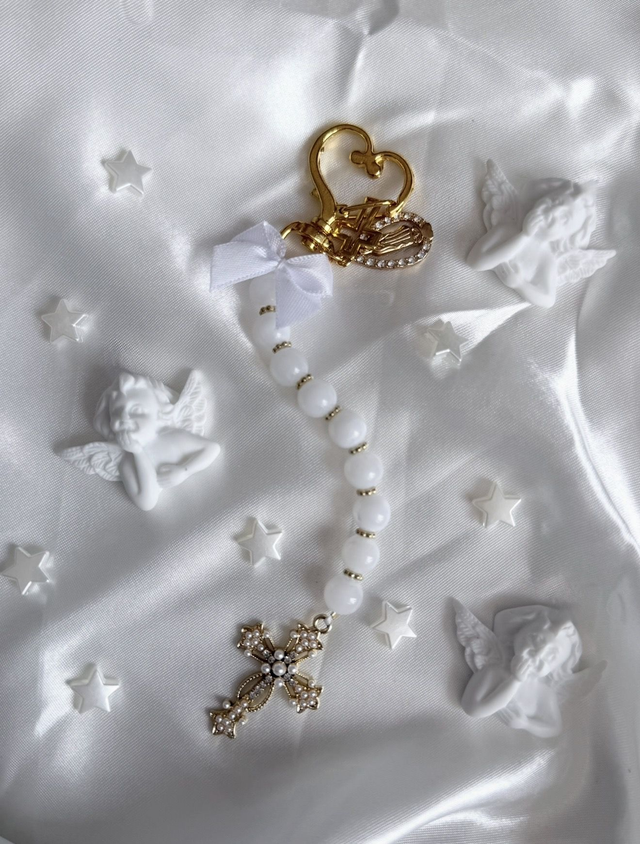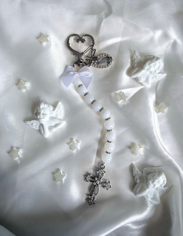 Le blanc symbolise la force, la protection et le mystère divin et le doré/ argenté évoque la gloire céleste, la royauté et la lumière divine. Ces couleurs élégantes et profondes rendent hommage à Abraham, un porte-clé inspiré par la figure biblique d’Abraham, symbole de foi, d’alliance et de promesse divine.