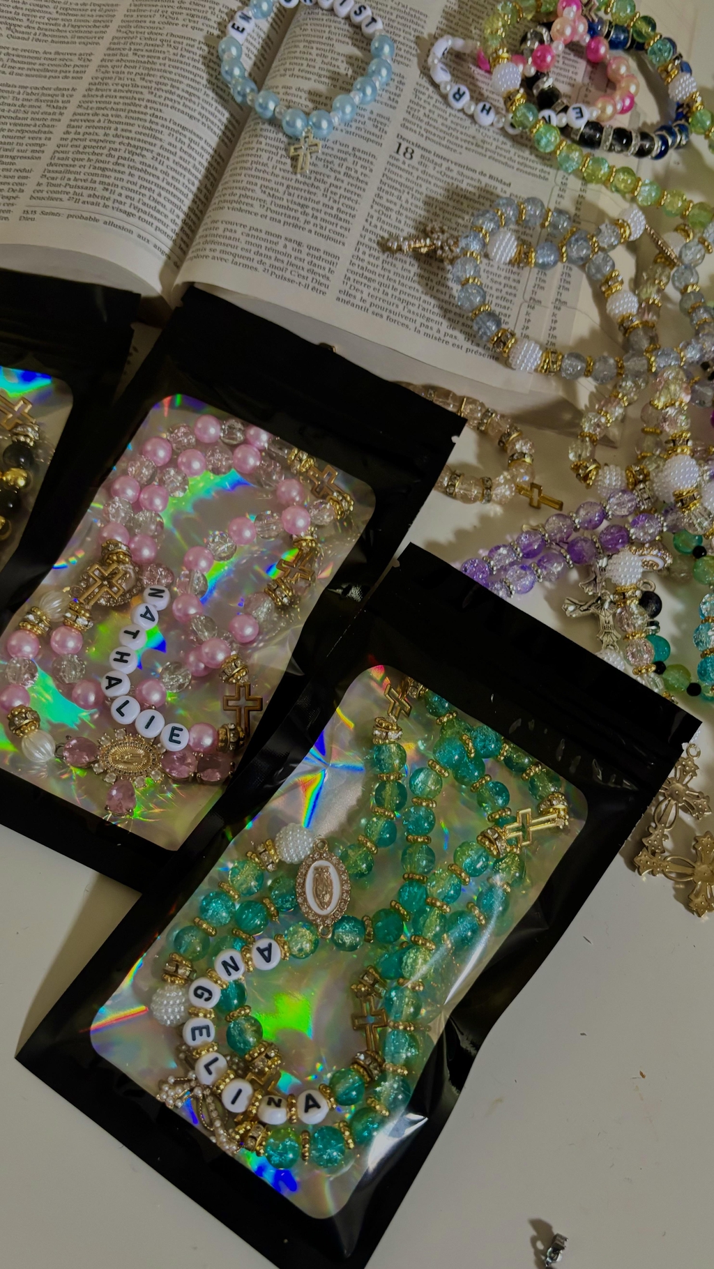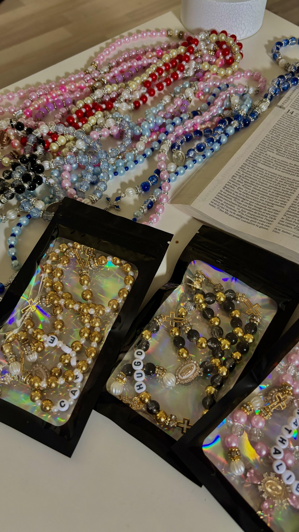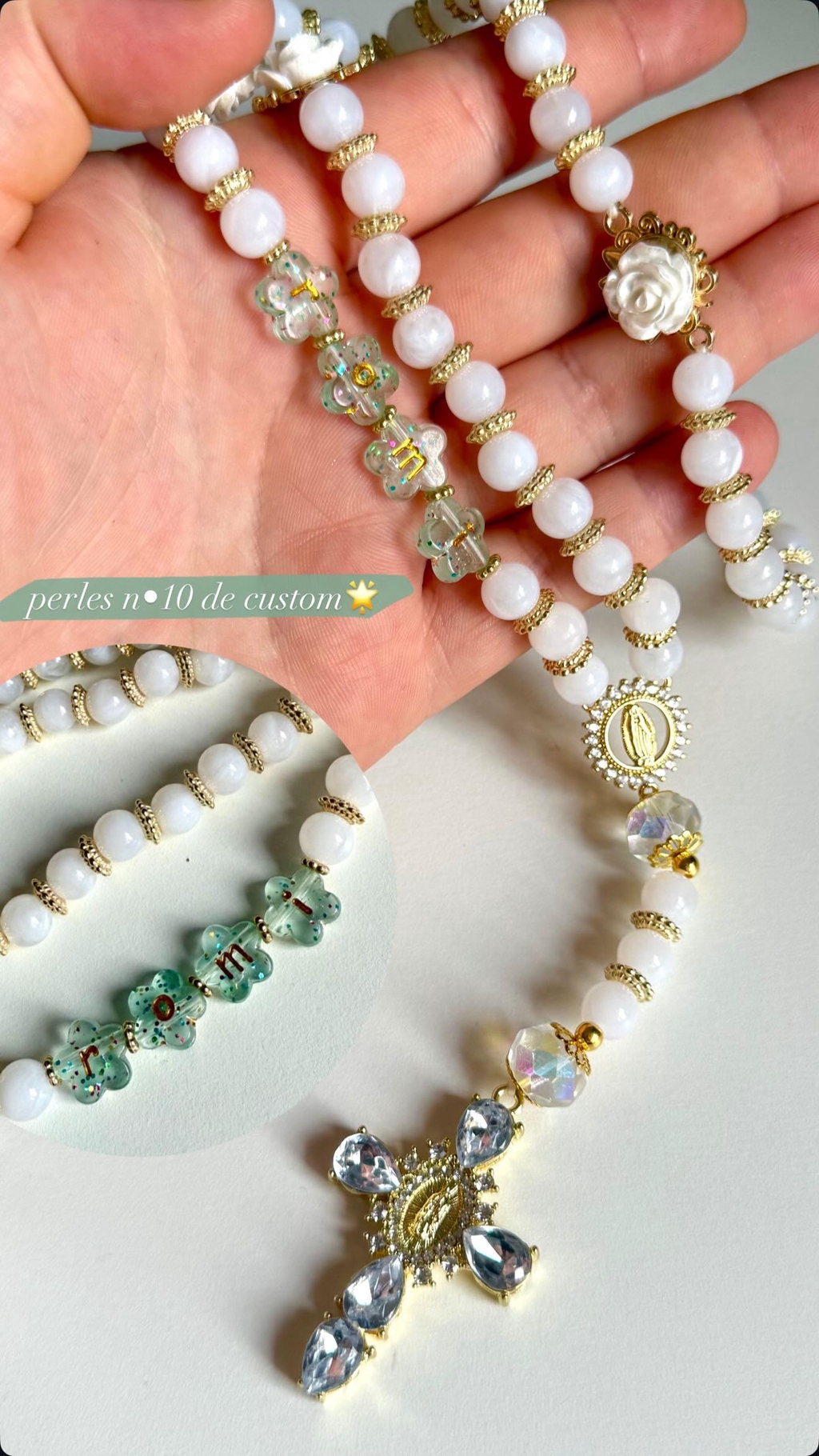 ๐กVous avez รฉgalement la possibilitรฉ de demander le chapelet que vous souhaitez en sa version argentรฉe (ou dorรฉe) si elle nโexiste pas dรฉjร . De demander une croix plus fine, mais aussi que je laisse dans votre commande un petit mot personnalisรฉ. Pour des customisations plus compliquรฉes merci de me contacter par mail/ whatsapp/ instagram.