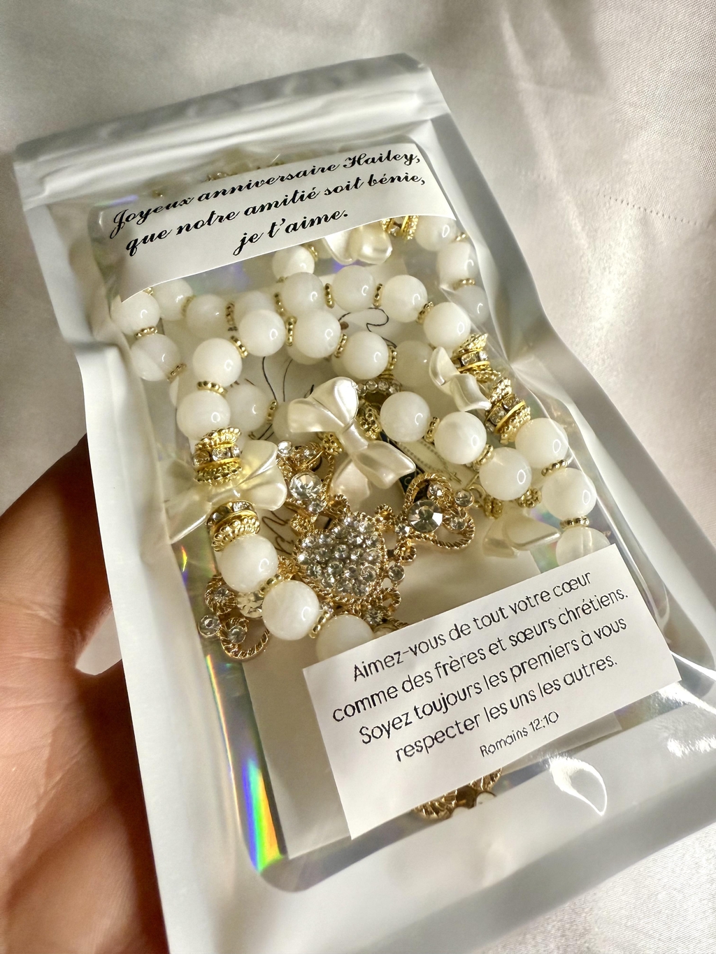 ๐ซงSi vous souhaitez une personnalisation sur un chapelet (avec un prรฉnom, une initiale, une date, un mot, un verset..) merci de me lโindiquer dans la case ยซ Votre message ร l'attention du commerรงant ยป qui sโaffiche dans le panier, avec :