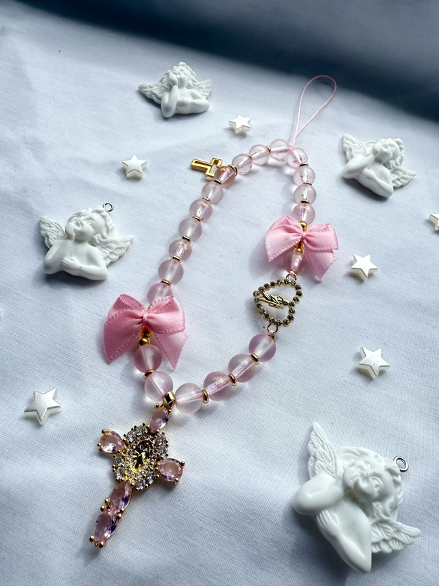 Le rose doux de ce bijoux de téléphone évoque la tendresse protectrice de Miryam envers son frère et son peuple. Les détails dorés représentent la gloire divine qui l’a accompagnée tout au long de sa vie. Les cœurs symbolisent son amour sincère, battant au rythme de la louange et de la foi. Ce bijou de téléphone, reflet de sa dévotion, invite à prier avec confiance, amour et gratitude.