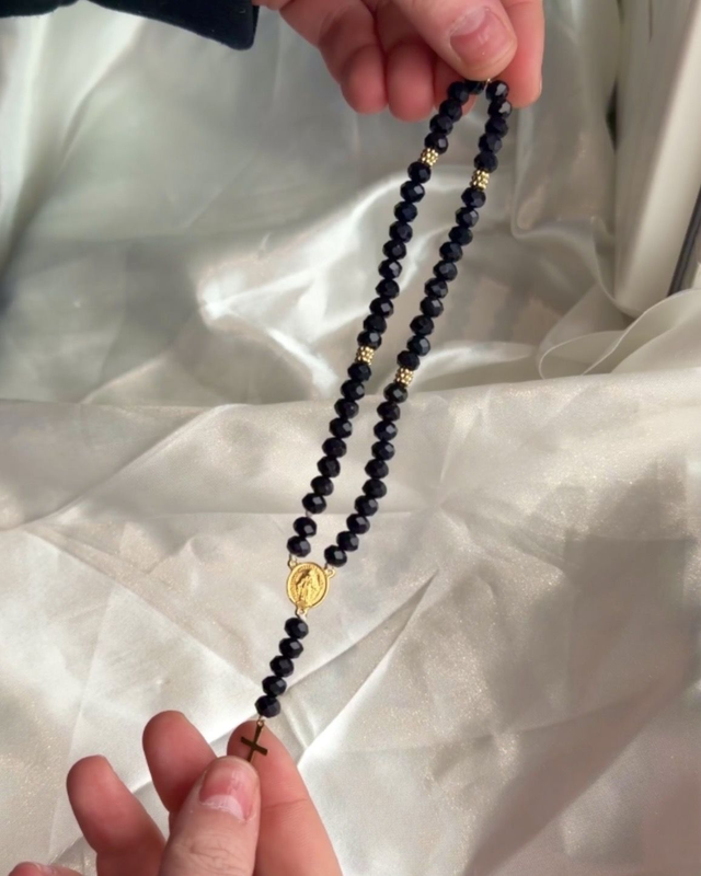 Le noir de ce bracelet chapelet reflète la profondeur spirituelle et la force intérieure de Timothée, disciple appelé à garder la foi au milieu des épreuves. Le doré/ argenté évoque la couronne de justice promise à ceux qui persévèrent dans la fidélité (2 Timothée 4:7-8). Conçu comme un bijou discret, il se porte au poignet et se déploie en chapelet, rappelant que la prière peut accompagner chaque instant de la vie.