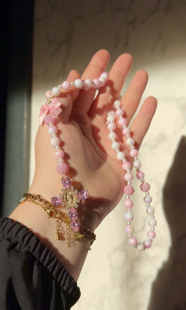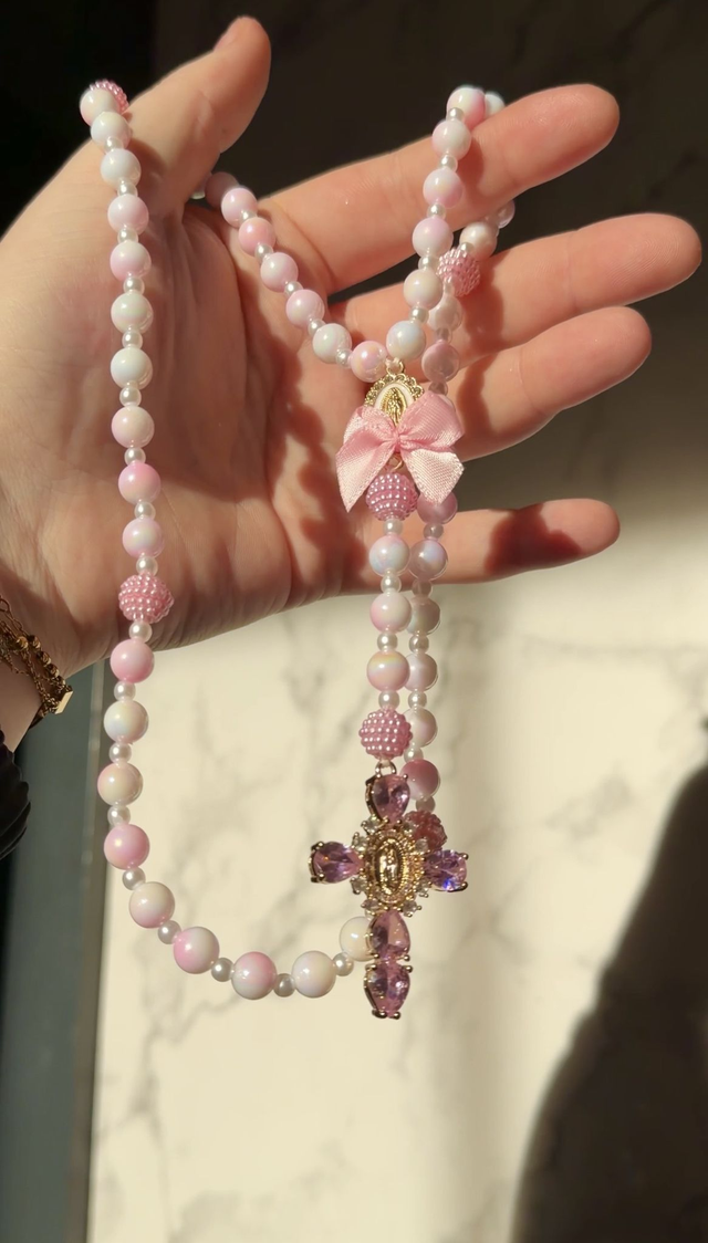 Le mélange rose-blanc évoque la pureté, l’innocence et la douceur du cœur, symbolisant la prière, la joie et l’espérance qui ont accompagné Élisabeth pendant ses années d’attente. Le doré représente la promesse divine réalisée, la lumière et la bénédiction céleste qui illuminent sa vie au moment où Dieu répond à sa foi. Ensemble, ces couleurs rappellent la grâce, la confiance et la joie d’une bénédiction reçue.