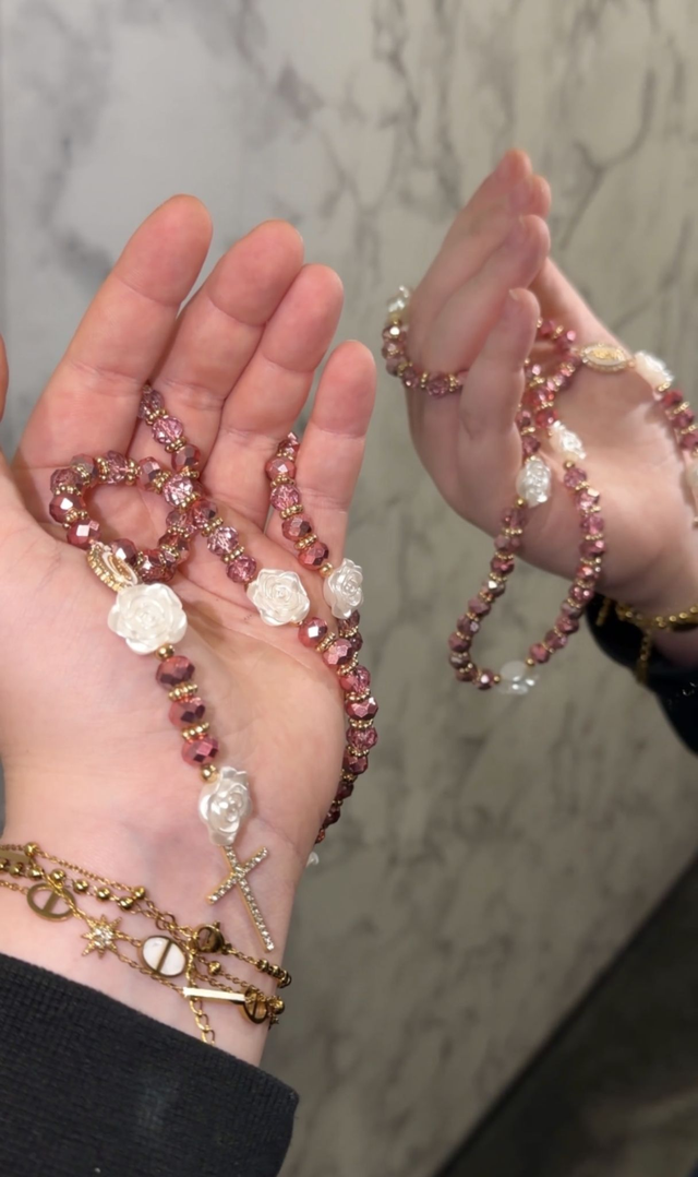 Le rose gold et le doré évoquent la grâce, la lumière et l’amour divin qui entourent Suzanne tout au long de son épreuve. Les fleurs blanches symbolisent sa pureté, son innocence et la beauté d’une foi restée intacte malgré l’adversité. Ensemble, ces éléments rappellent que la fidélité, la confiance et la droiture du cœur sont toujours honorées par Dieu, et que la vérité finit par éclore comme une fleur sous la lumière divine.
