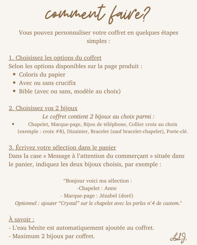 Vous pouvez personnaliser votre coffret en quelques étapes simples :
