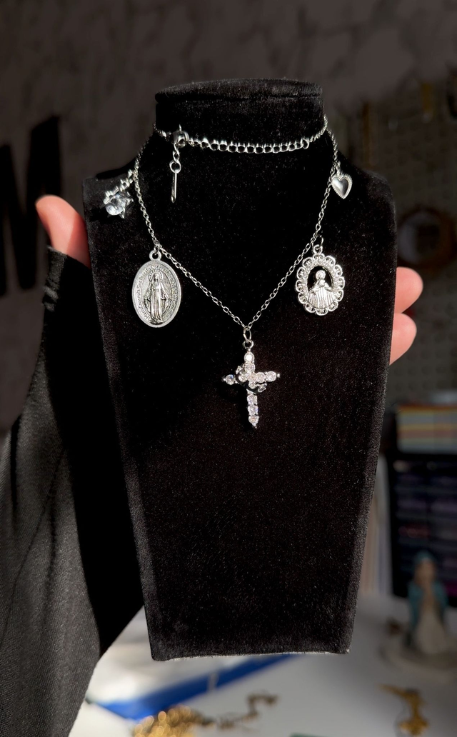 Ce collier, avec sa croix et sa couronne qui tourne, accompagné de divers charms, reflète cette dualité de force et de lumière. Le noir rappelle l’épreuve et le mystère, tandis que le doré ou l’argenté évoque la victoire, la protection et la grâce divine. Un bijou spirituel, lumineux et fort, qui invite à la confiance, à la sérénité et au courage face aux défis de la vie.