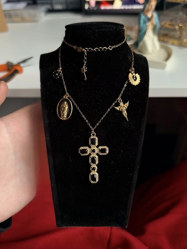 Ce collier s’inspire de cette fidélité. Le noir rappelle l’épreuve et le silence de la croix, tandis que le doré ou l’argenté symbolise la lumière divine qui traverse l’obscurité. La croix devient un signe de confiance, de recueillement et de paix intérieure, portée comme un rappel de la foi qui demeure, même dans l’ombre.