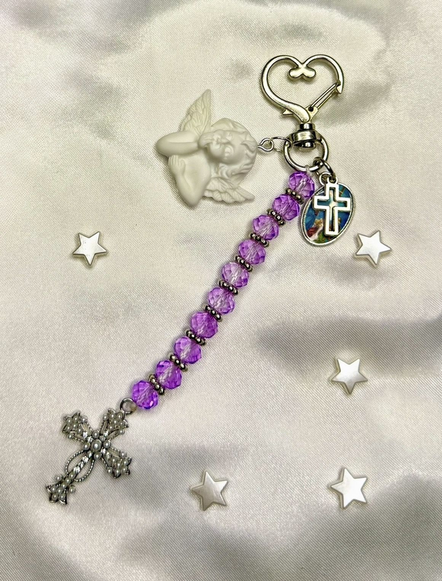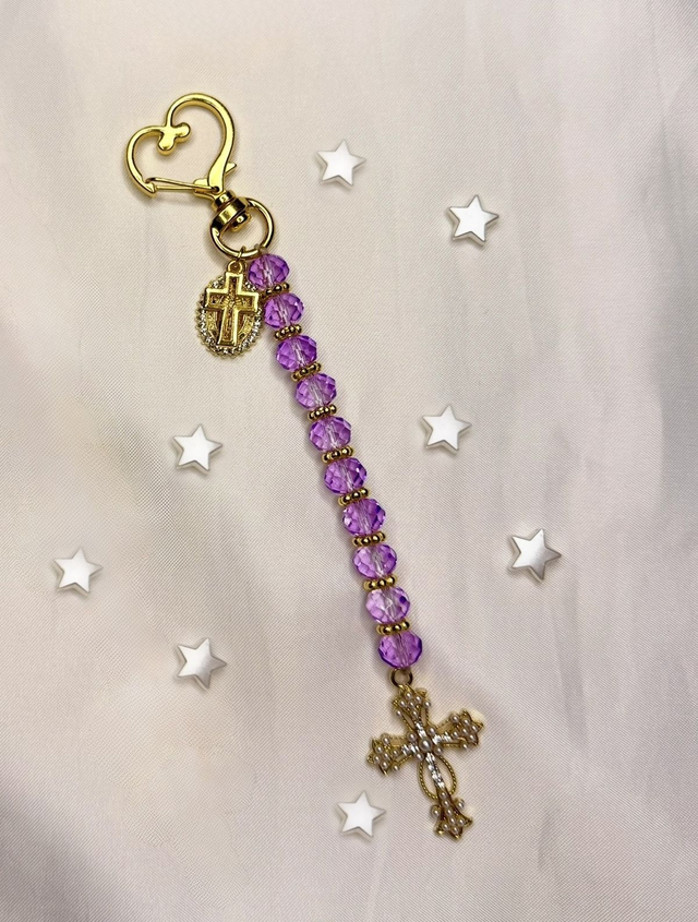 Le violet de ce porte-clé symbolise la dignité, la fidélité et la souffrance transcendée par la foi, rappelant le chemin difficile mais protégé d’Agar dans le désert. Les touches dorées/ argentées évoquent la lumière et la bénédiction de Dieu qui l’accompagna, transformant sa douleur en espoir et en force pour l’avenir.
